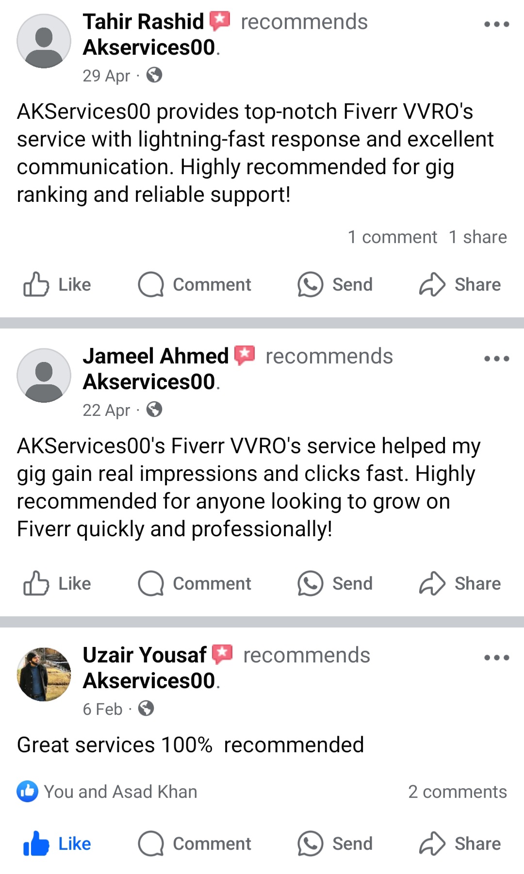 AkSERVICES is a leading digital services agency and Fiverr expert team. With over 6 years of proven success, we specialize in helping clients grow on Fiverr through expert guidance, strategic Fiverr VVRO’s, and high-converting gig optimization. Trusted by thousands, our team delivers impactful results that drive real growth and long-term success.
